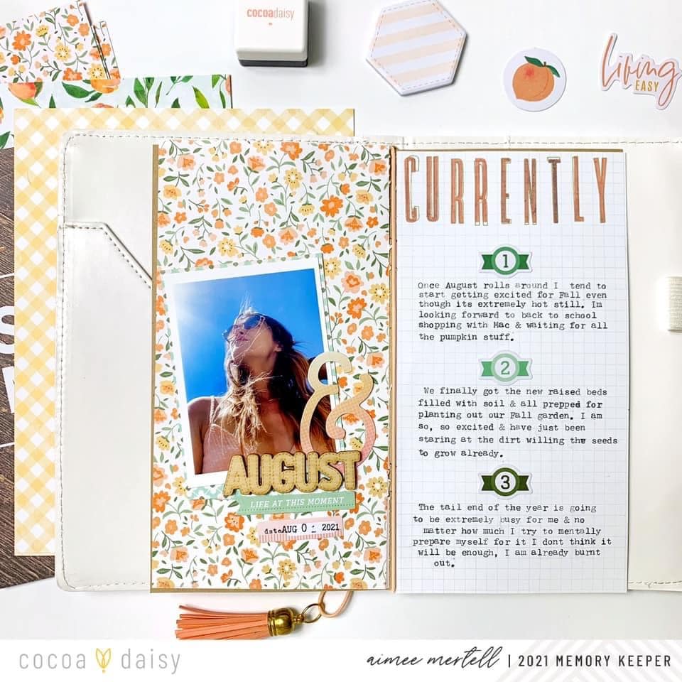 Aimee’s “Currently” page is perfect inside her Peach Ridge Simple Dori.