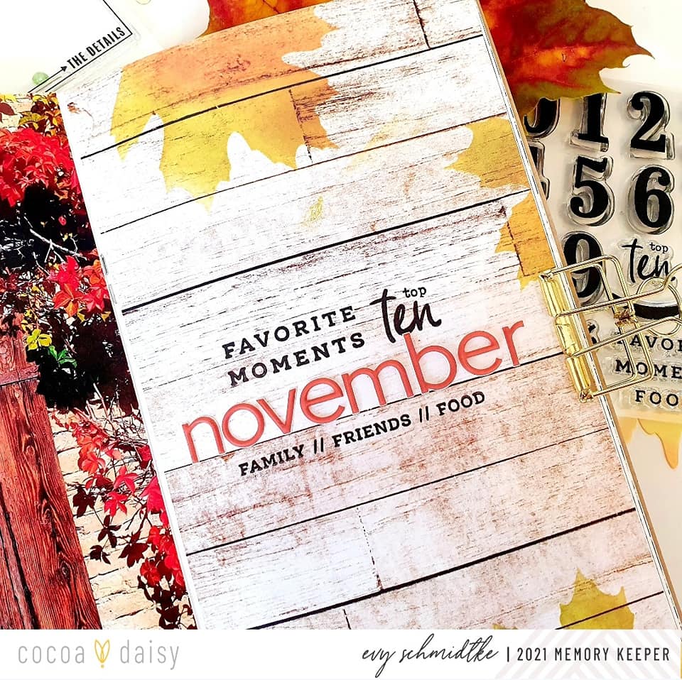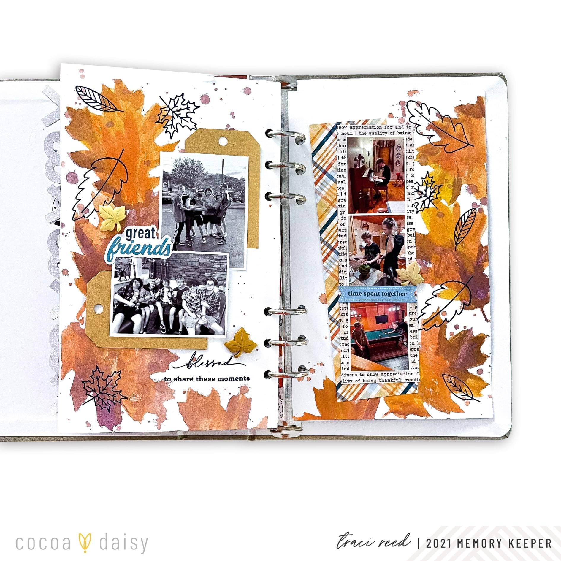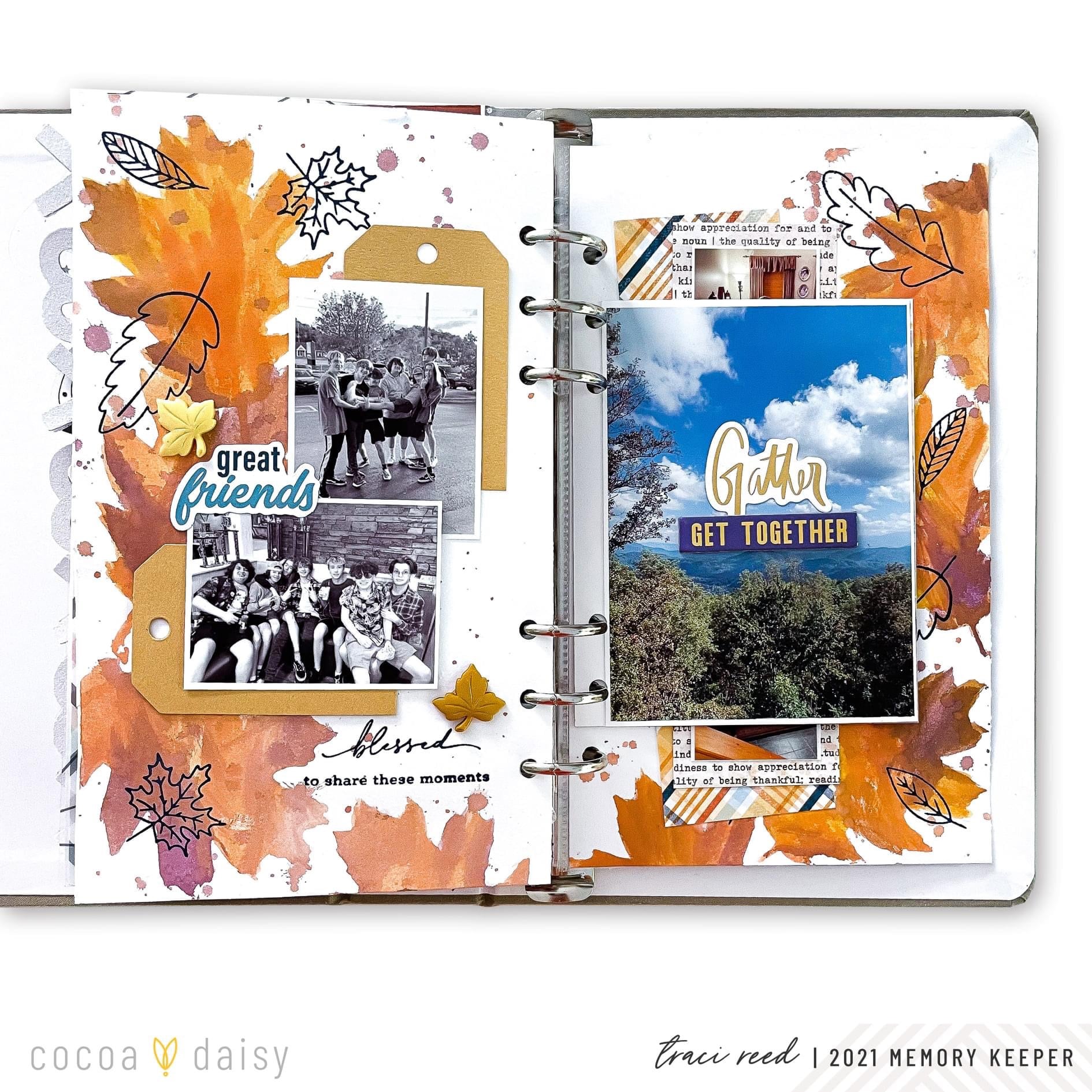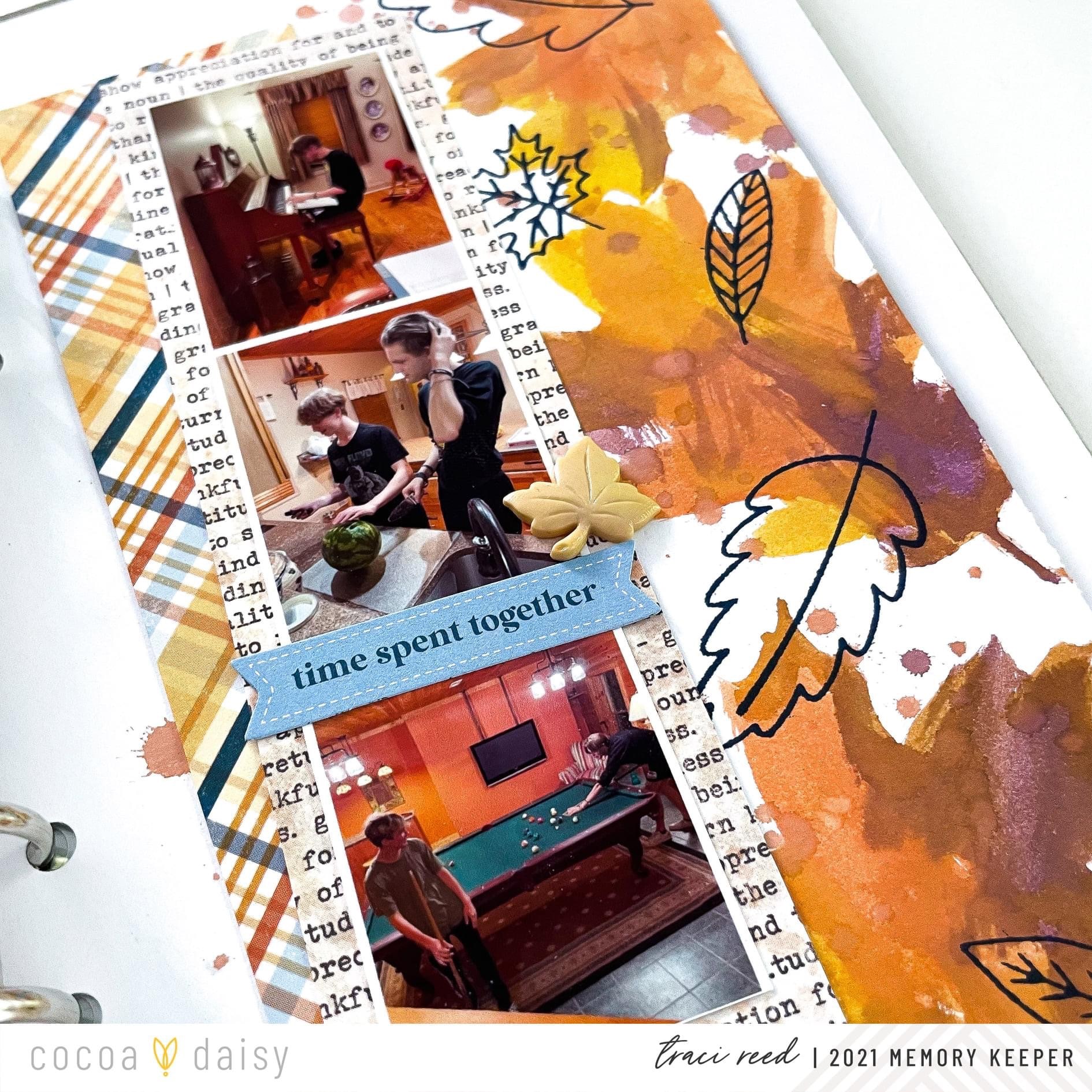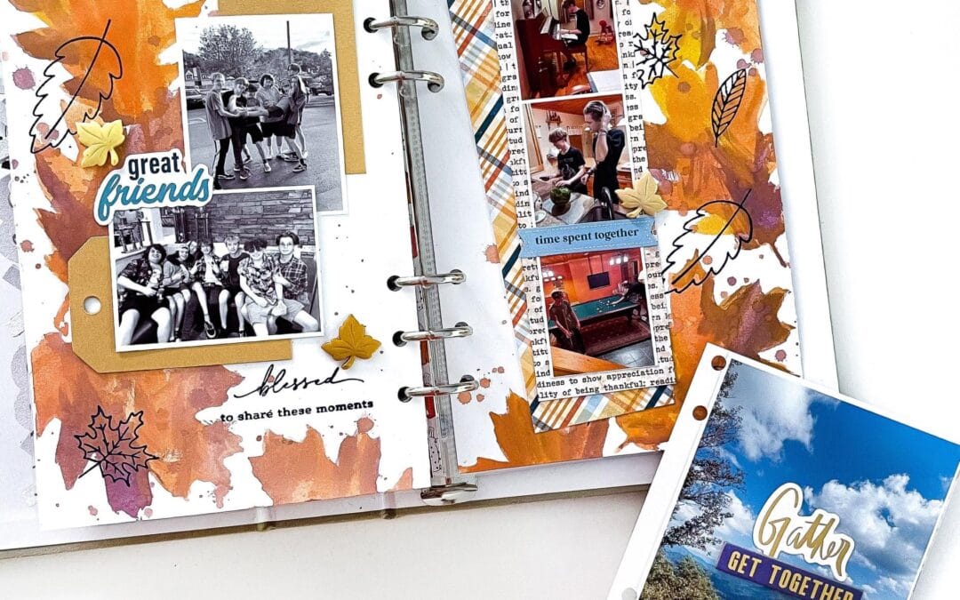 We were spoiled with the Gather Collection to have so many wonderful inky tools including the Gratitude Stamp Set, available to new subscribers, the Gather Memory Keeping Stamp Sets, and even a stencil in the Gather Classified: Memory Keeping Kit! Our Creative Team got to work using these awesome inky items in their memory-keeping spreads.