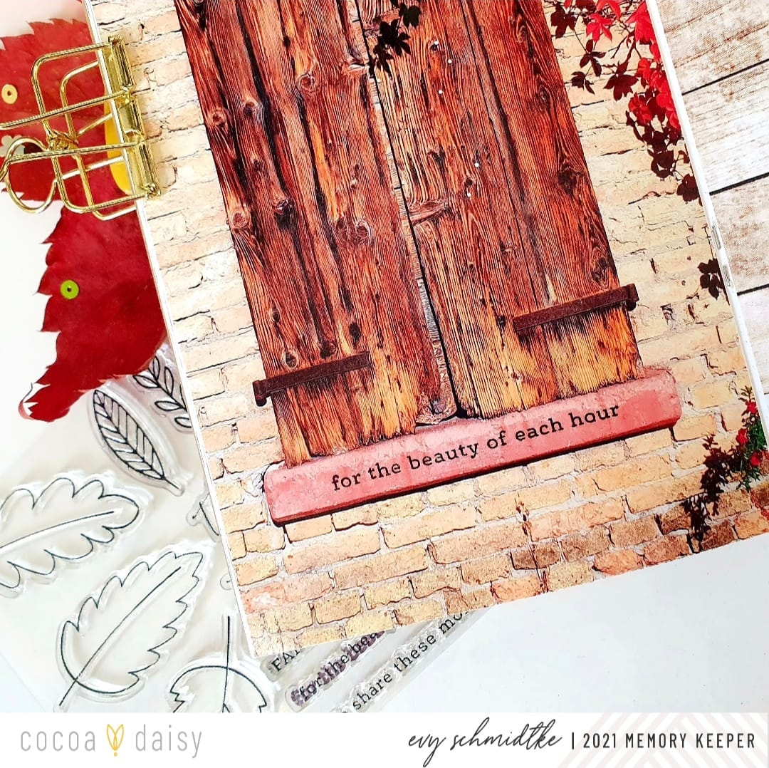 “When I opened the Gather Classified: Memory Keeping Kit, I immediately thought of using gesso with the oak leaf stencil.