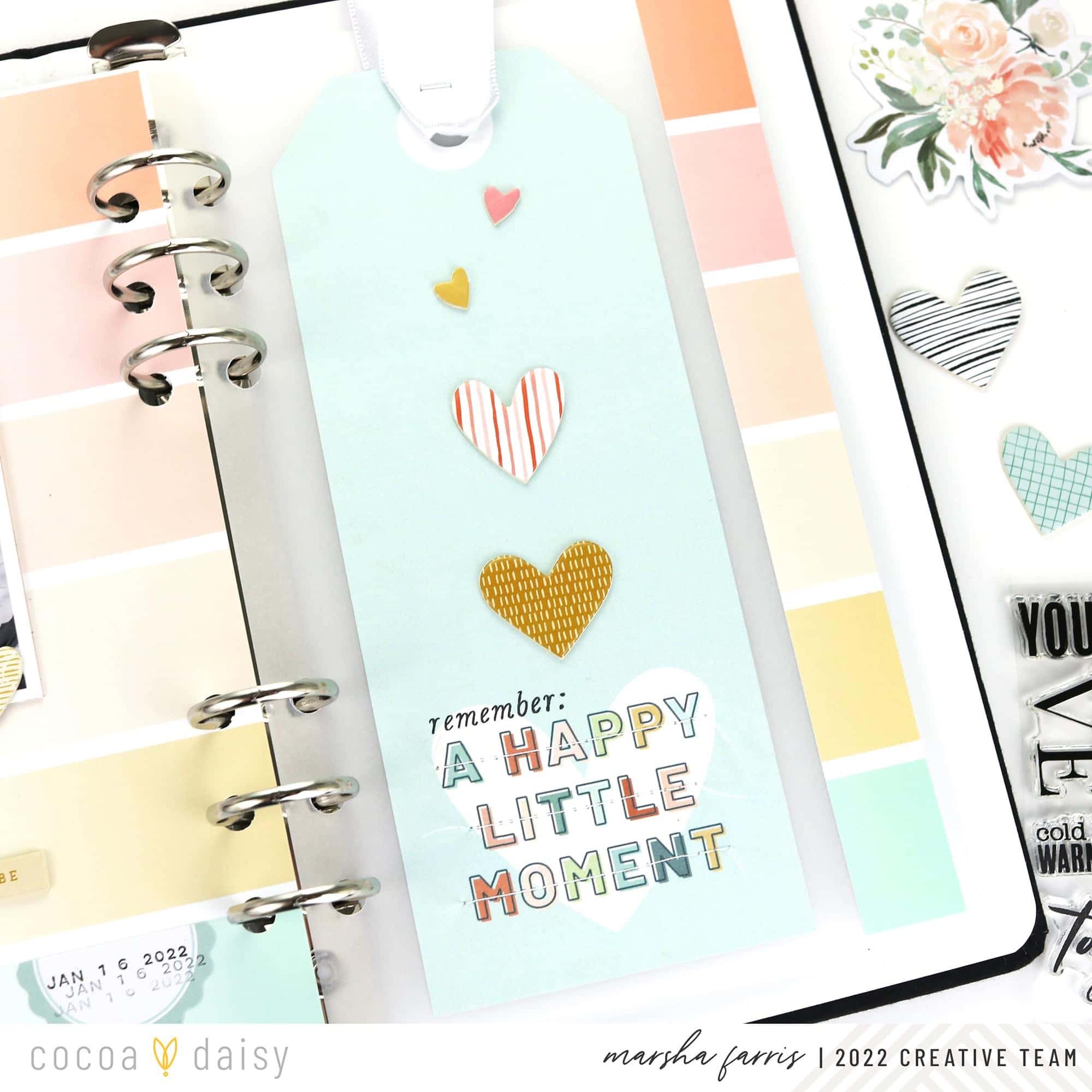 Here is a close-up of how I decorate using the flags. Do you decorate the pockets of your planner? If you do, the hearts and florals in the Elegance Blooms Collection are perfect embellishments for your planner pockets!”