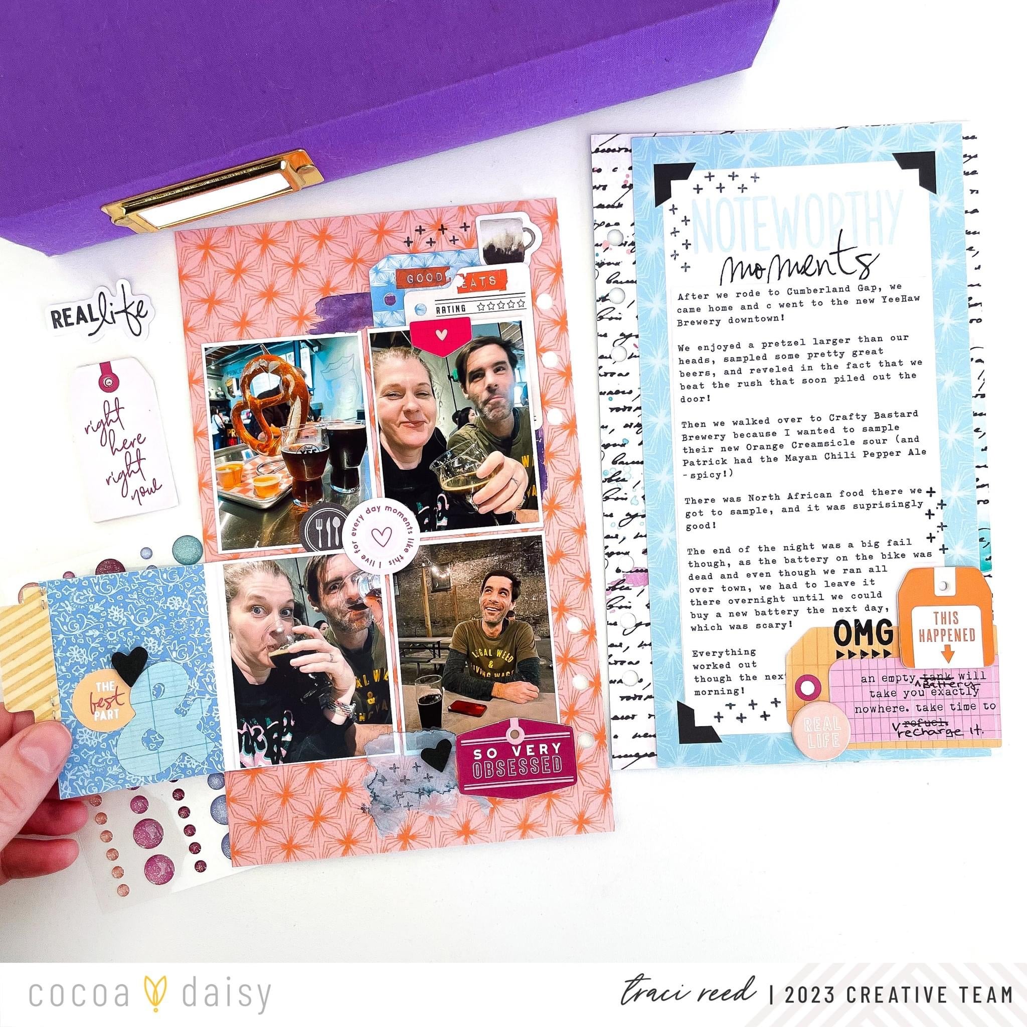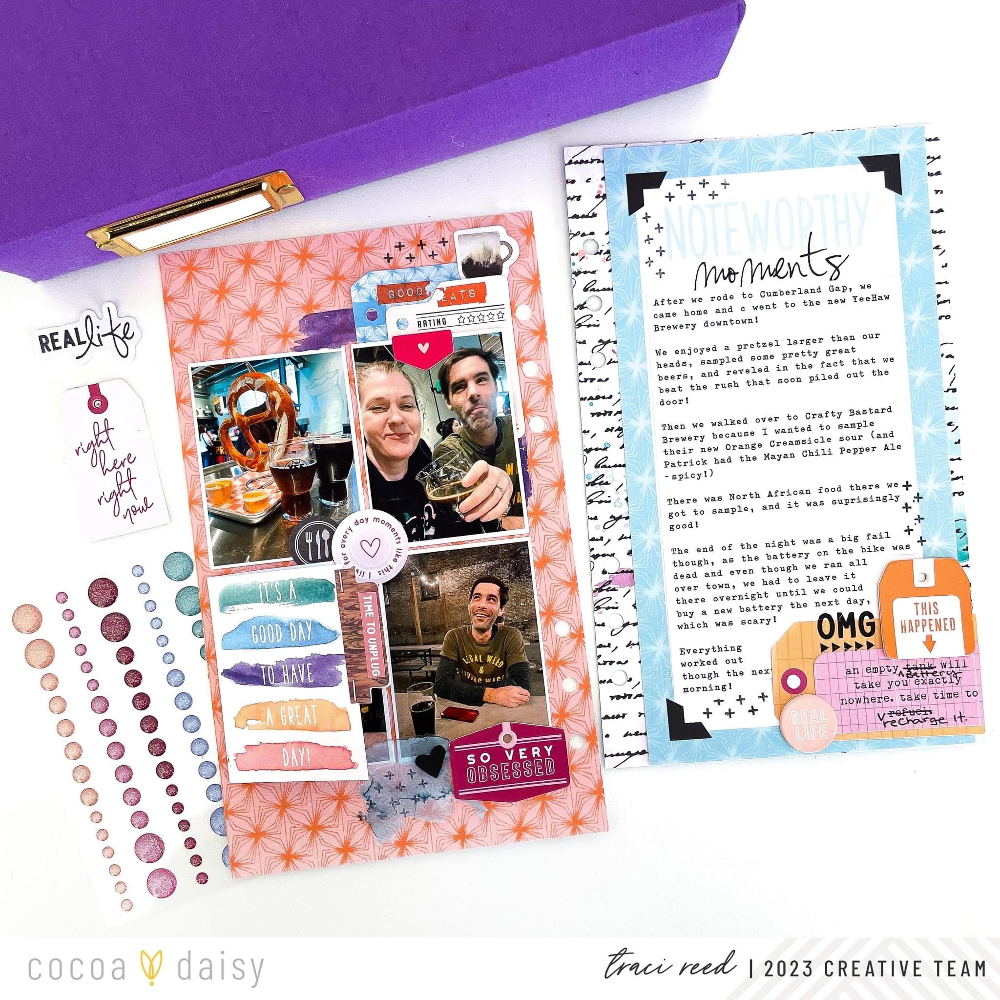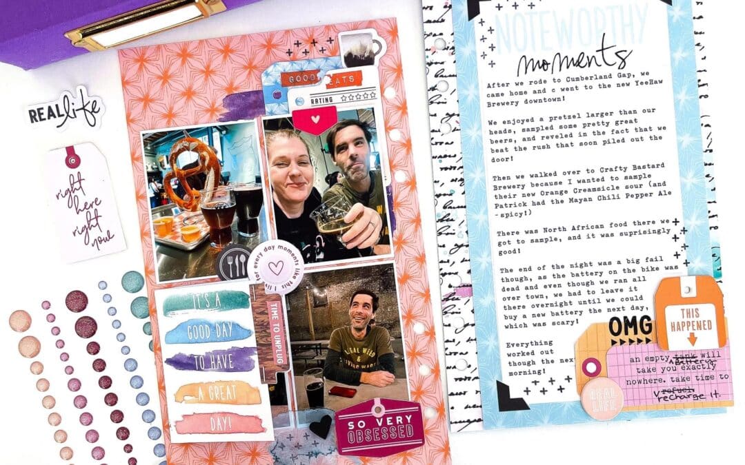 I love a great themed collection like everyone else, but I also love the challenge of going off-theme an making a collection fit my story as I did with the Bookish Collection and this layout of a recent good day/bad day trip my husband and I took.