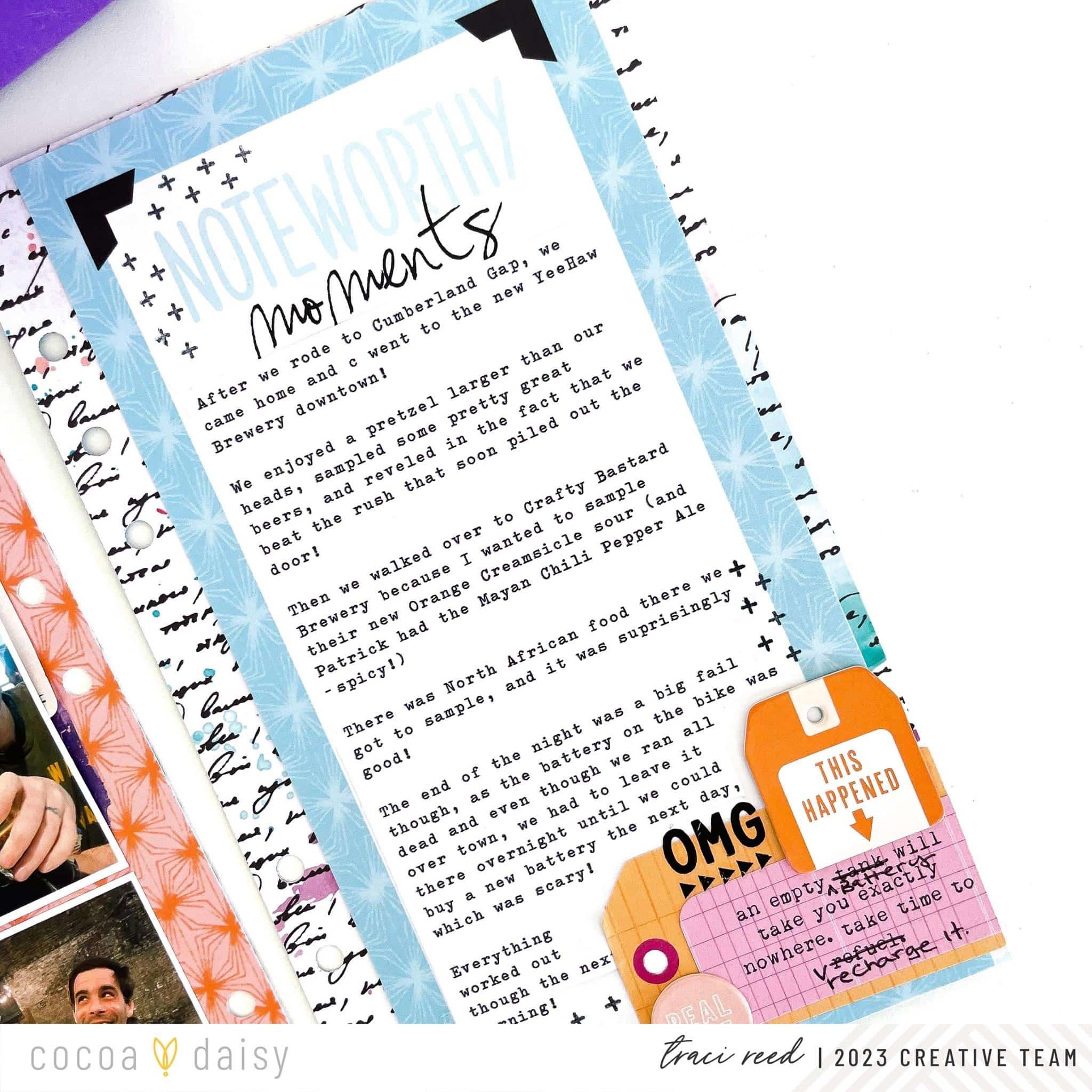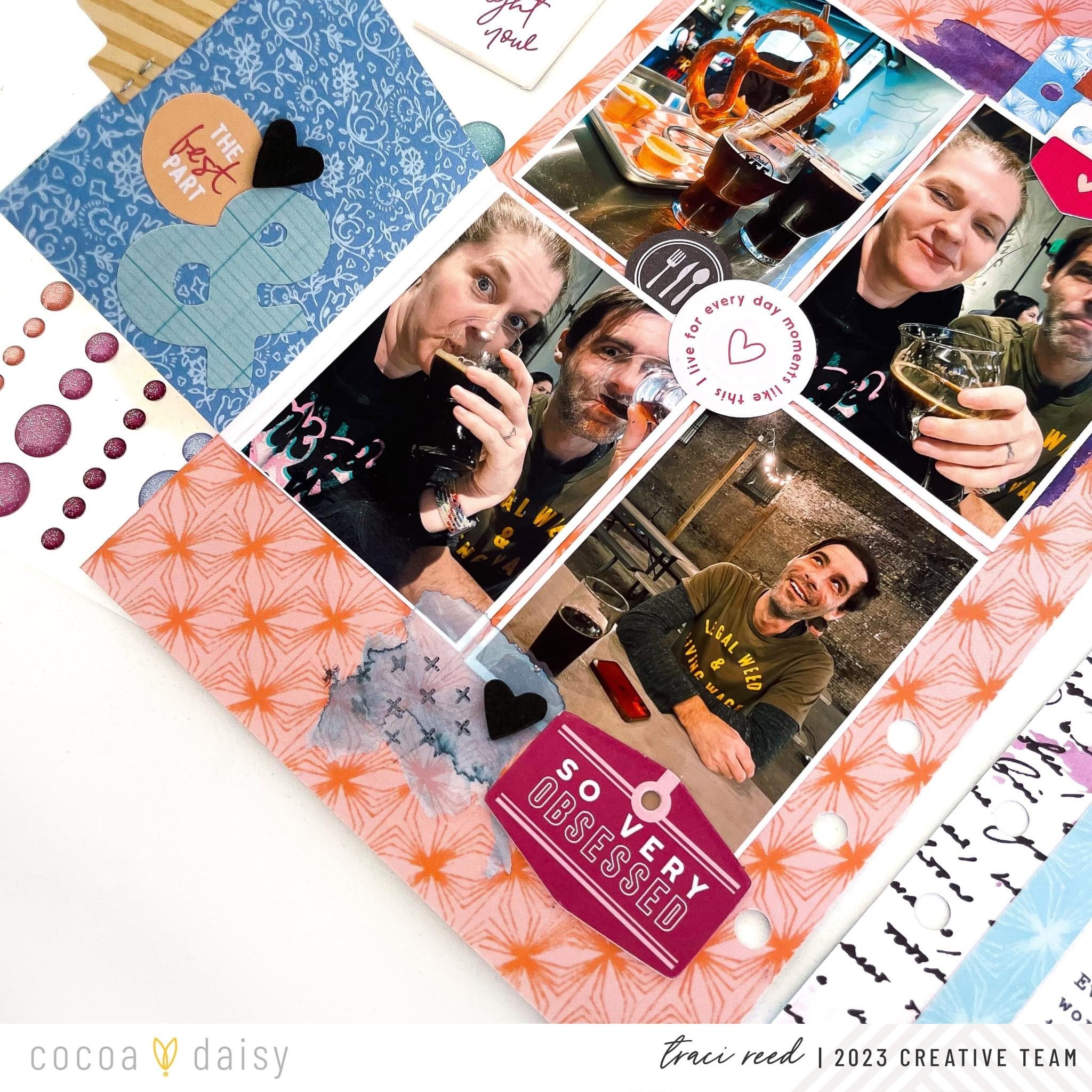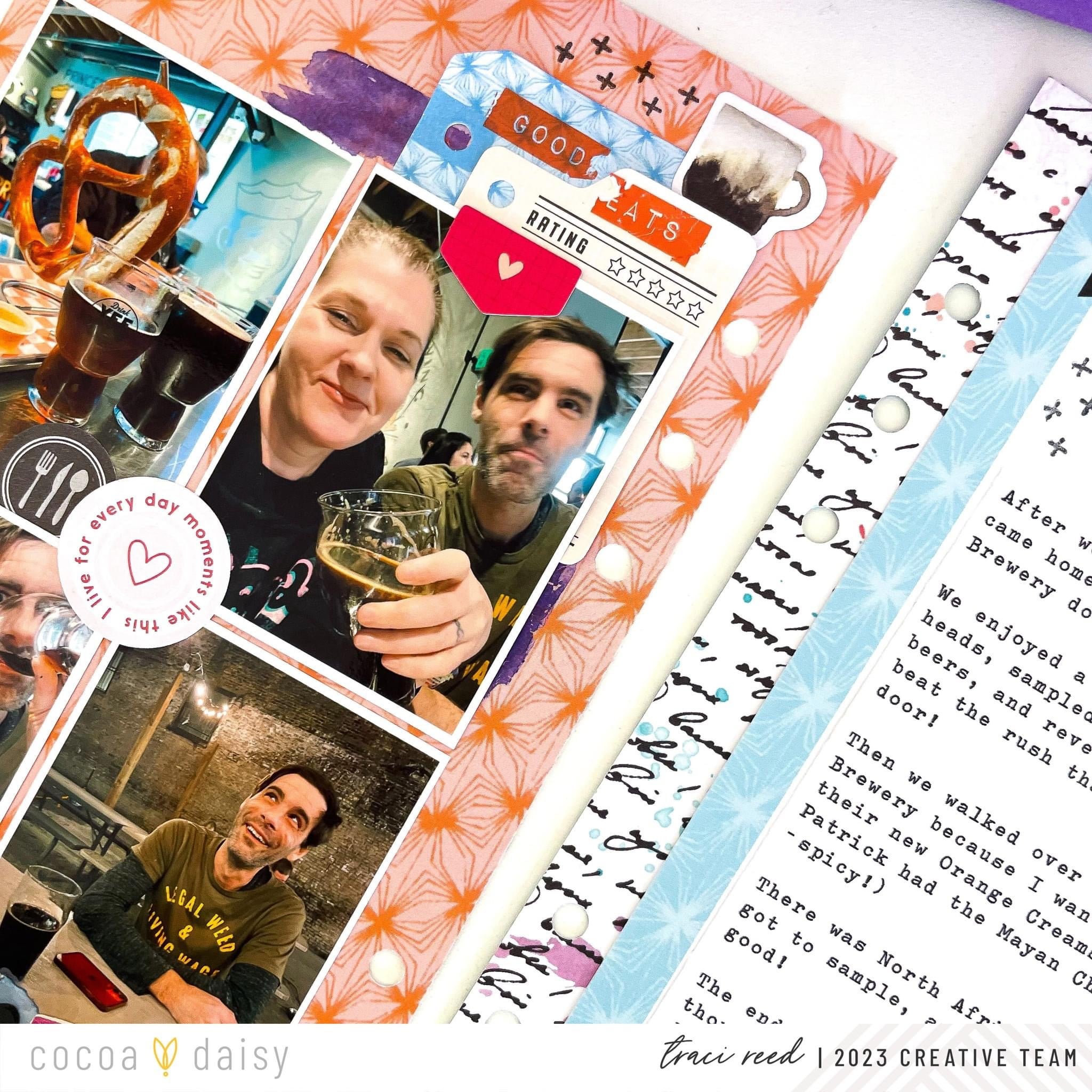 I love a great themed collection like everyone else, but I also love the challenge of going off-theme an making a collection fit my story as I did with the Bookish Collection and this layout of a recent good day/bad day trip my husband and I took.