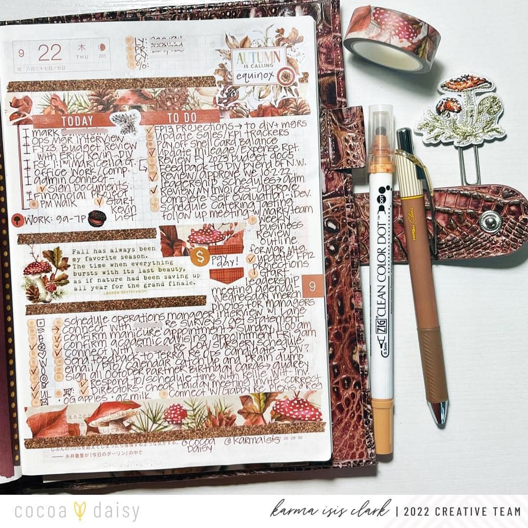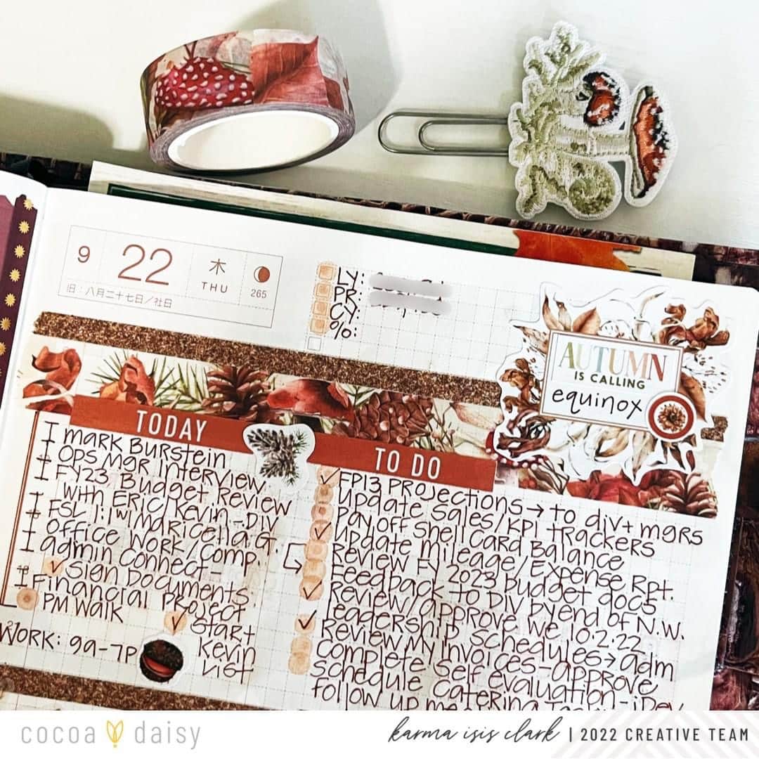 This was the first day of fall on my planner page, so I dressed it up with the Autumn Thicket Collection. I used two styles of Washi, and several deco stickers and the quote is from the Autumn Thicket Planner Kit.