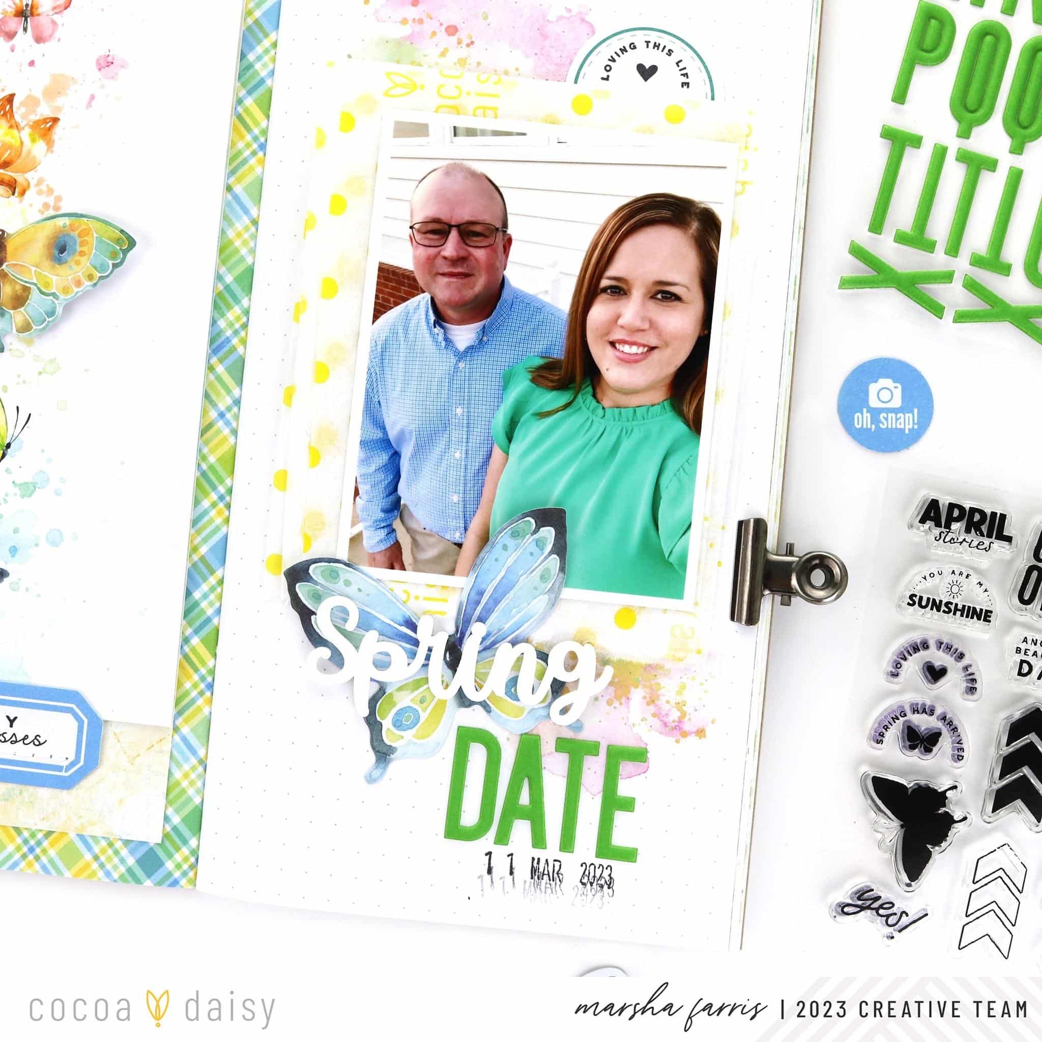 This month’s Dandelion Wishes Collection is perfect for springtime documenting. I was excited to use it to create a Simple Dori layout, including a recent photo of my husband and me.