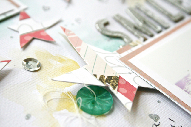 Always love seeing handmade embellishments on layouts…it is the perfect touch of “Mom made this” ! Perfect way of leaving that mark of love:)