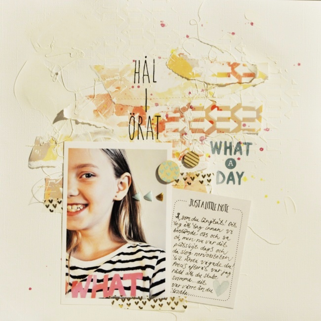 And that was my process! 🙂 I really miss doing the Project Art posts, and it felt good to get a bit messy again, taking photos along the way. I hope you feel inspired to scrap! Have a wonderful day everyone!