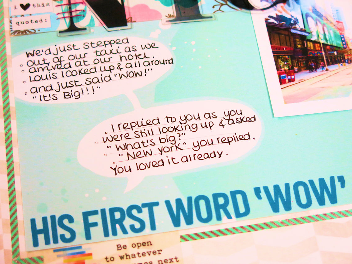 I think as well as scrapbooking our lovely photos, it’s just as important to document conversations. I like to keep a notebook on me so I can jot things down. When we take a trip, I keep a full journal as I want to remember it all. Our kids grow up so fast, I want to capture as many moments as I possibly can.