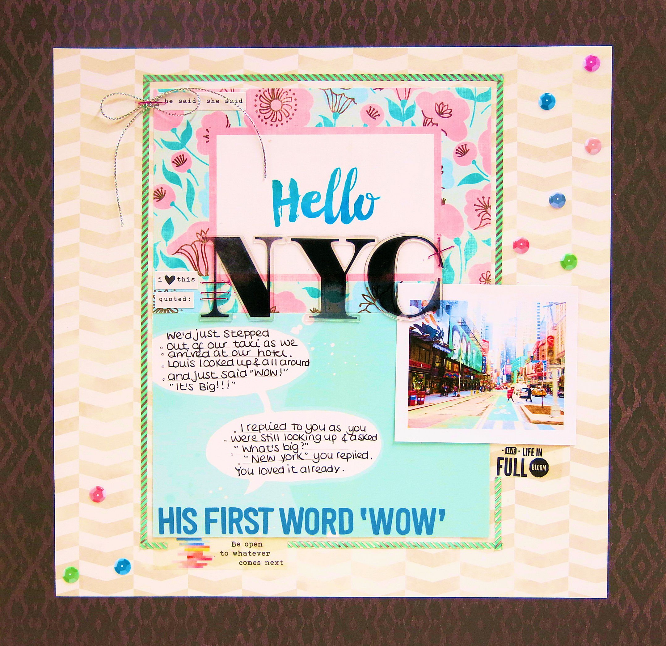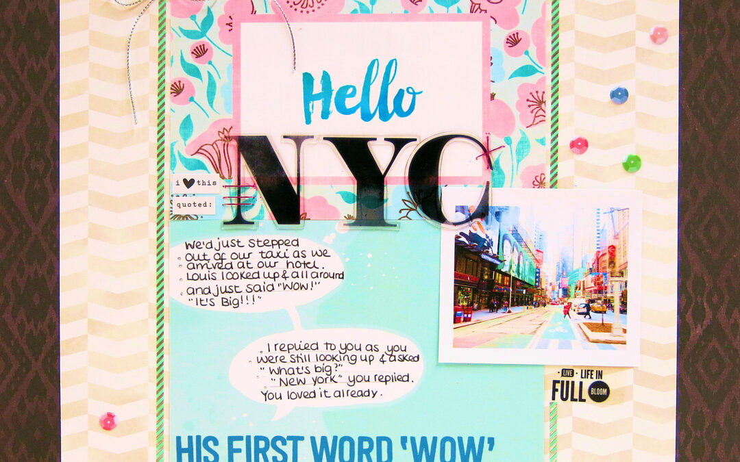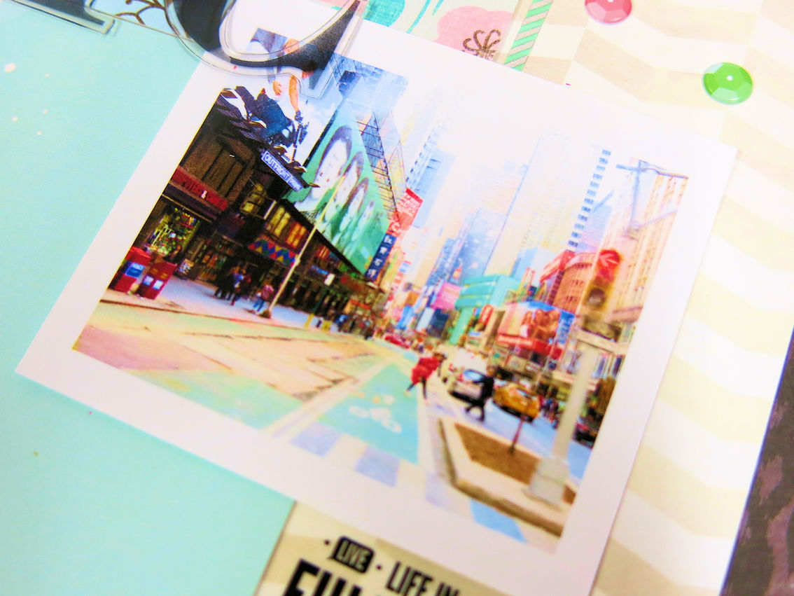 I’d snapped this photo from the taxi just moments before, so decided to use this. I like that it’s a little blurred. Kind of like NYC is in full speed. And don’t those colours just match this kit perfectly?!! Like it was meant to be!