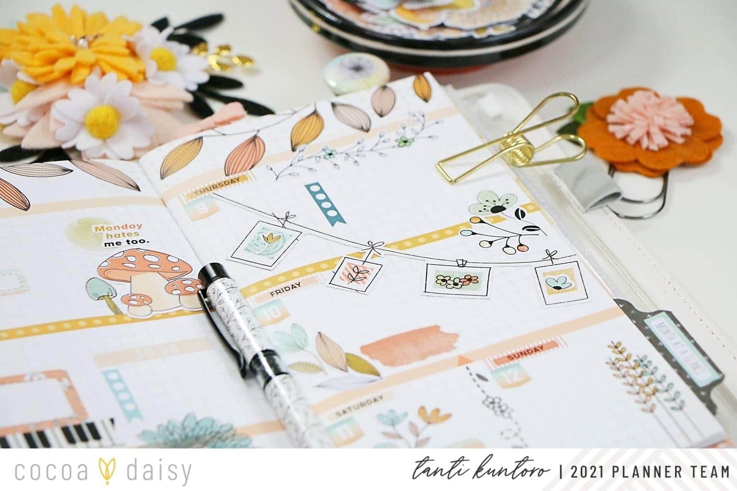 I also used one of them to decorate my first September week spread. They are so pretty together with all the printable flower die cuts and flower stickers from the Doodles & Dashes Collection.