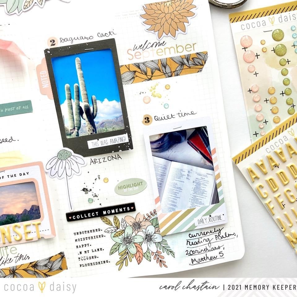 I love how it marks the page with a bit of whimsy. Are y’all using the frames traditionally with photos behind or adding in words? I love seeing all the creativity that comes from using a particular element in the memory-keeping kits.”
